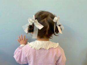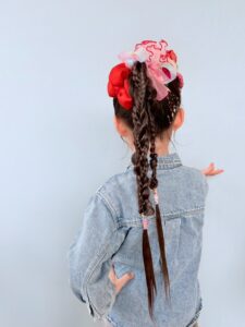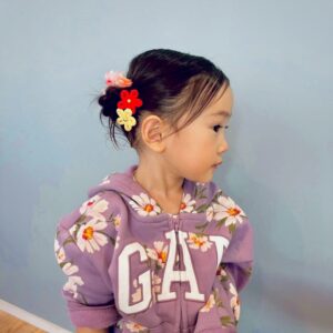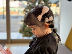 ツインのネジネジにママお手製のたくさんの髪飾り